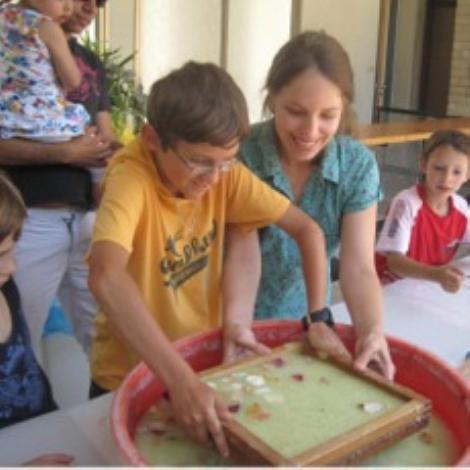 סדנאות עשיית נייר מנייר ממוחזר והדרכות בתערוכת הנייר הבינלאומית בסוכות 2011 במוזיאון וילפריד בקיבוץ הזורע